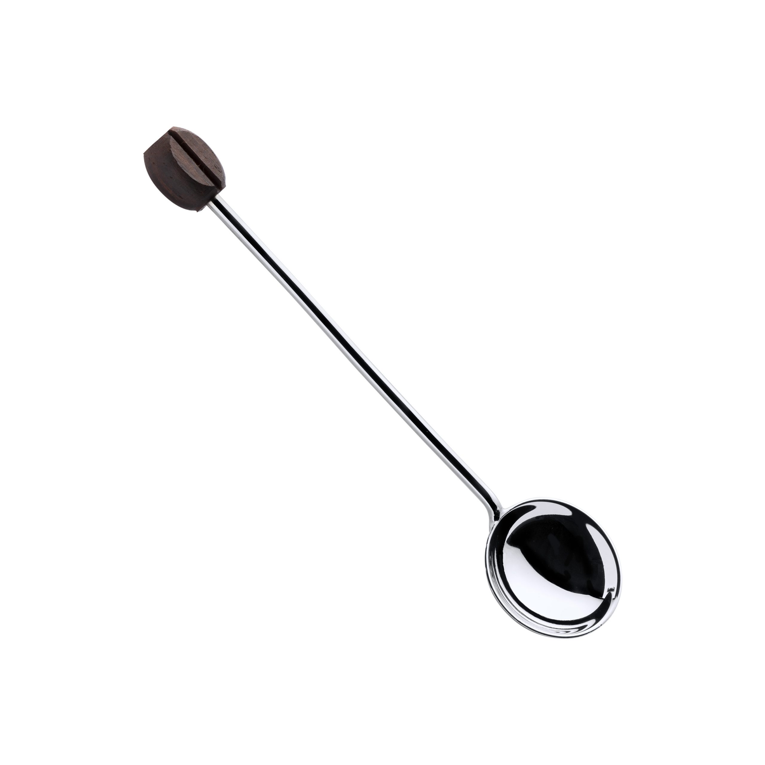 Pá de açucar lisa em prata 0,925 com grão de café em madeira no topo.