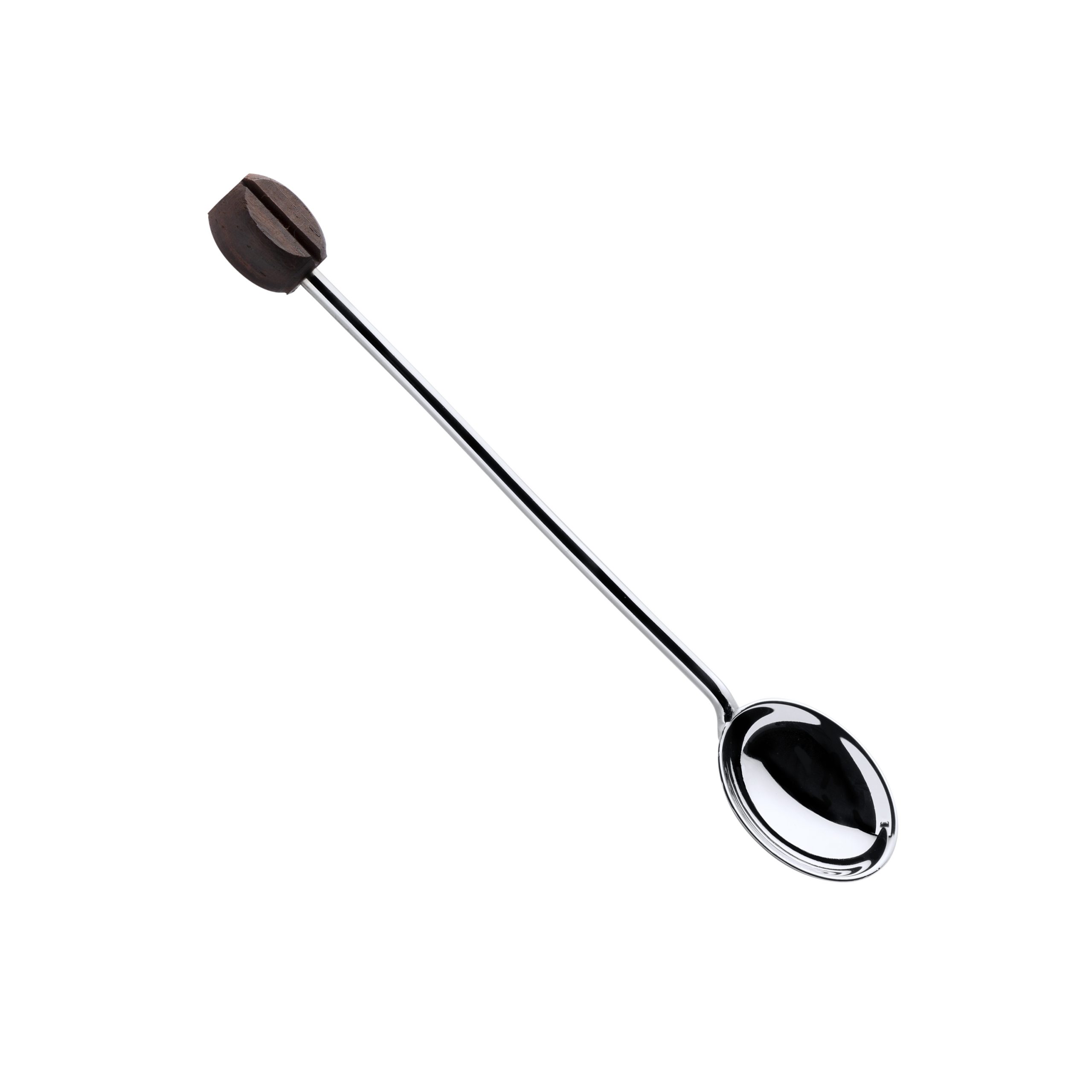 Colher e cabo liso em prata 0,925 e grão de madeira no topo.